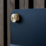 Le mensole sono realizzate in acciaio zincato spesso 2 mm e successivamente verniciate a polvere per una finitura resistente ed elegante. Le viti di serraggio sono realizzate in ottone massiccio non trattato, che può sviluppare una leggera patina nel tempo. Le staffe sono in zinco fuso, garantendo una base solida per il montaggio.
