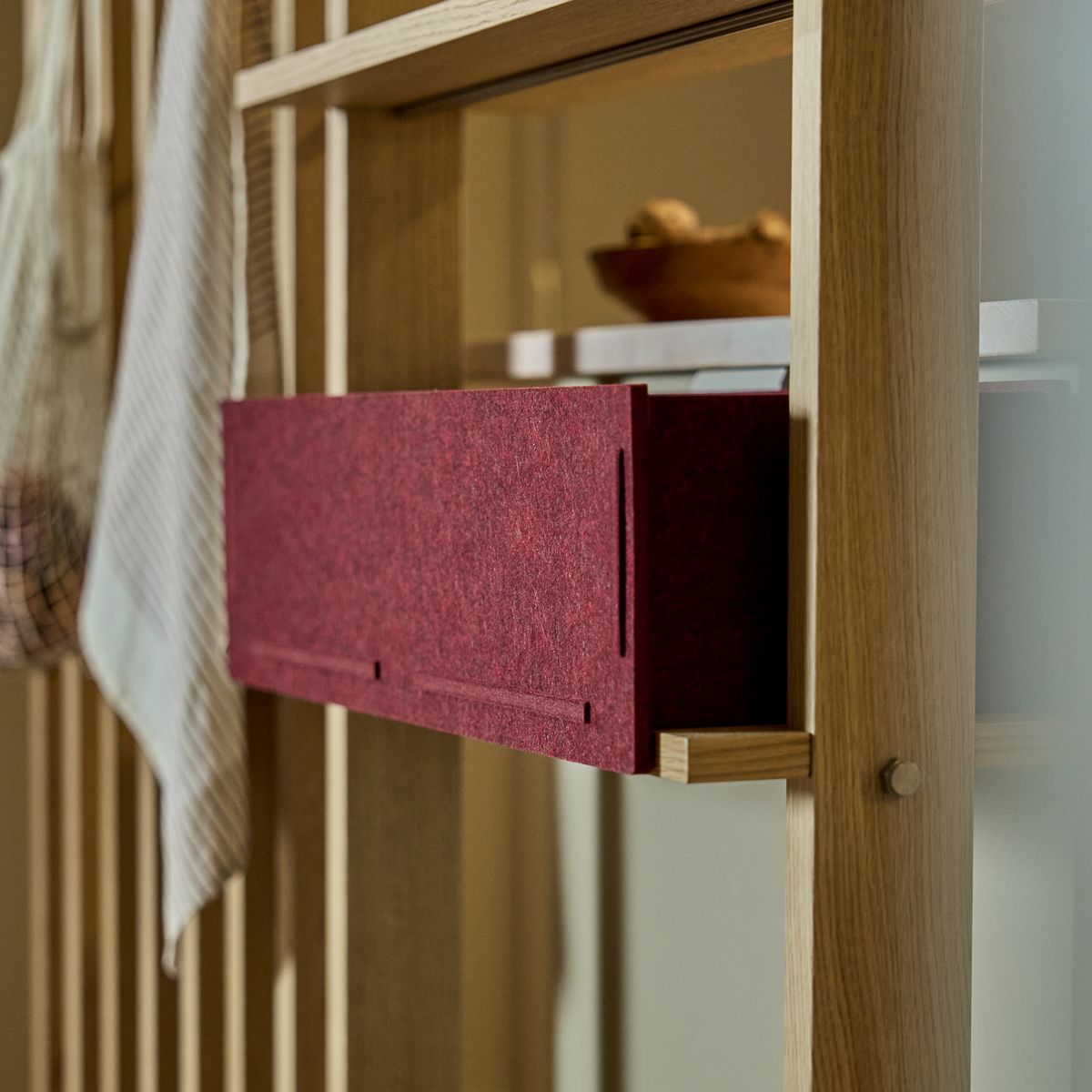 La Vigg Felt Box è progettata per adattarsi perfettamente alla Lova Wood Shelf. La dimensione, il morbido feltro e i bordi puliti si posizionano naturalmente sulla mensola, trasformando lo stoccaggio aperto in uno spazio calmo e organizzato che è facile da vivere.
