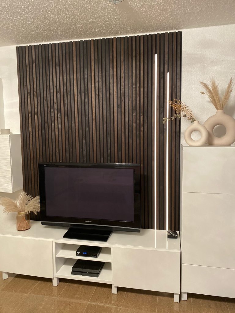 Con la possibilità di posizionare una striscia LED tra le doghe del pannello Akupanel di WoodUpp, puoi personalizzare il tuo spazio e il pannello secondo i tuoi gusti personali.